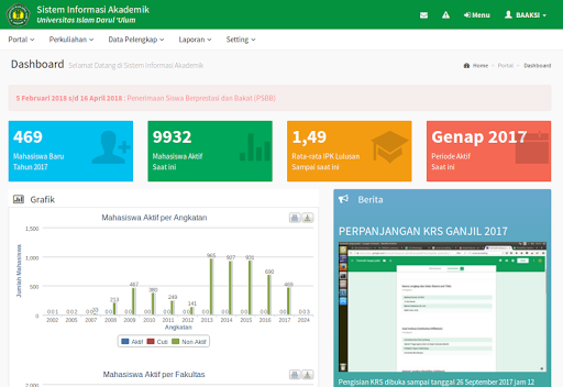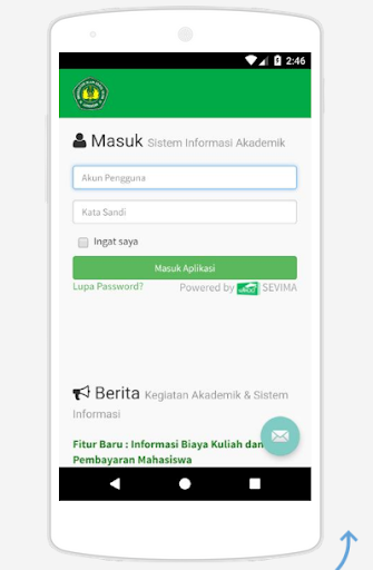 Mahasiswa dapat mengisi KRS online dan melihat KHS pada akhir semester sebagai rutinitas kegiatan akademik. Informasi jadwal kuliah dan riwayat pembayaran juga kini ada di genggaman.