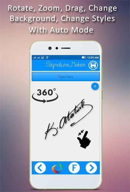 Auto Signature Mode is very easy to use. Just type your name and will automatically create signature for you. Different signature styles are available in this signature app. With this electronic signature app (esignature) and digital signature app you can take autograph from celebrities by photography signature option.(docusigh). also useful for document signature.