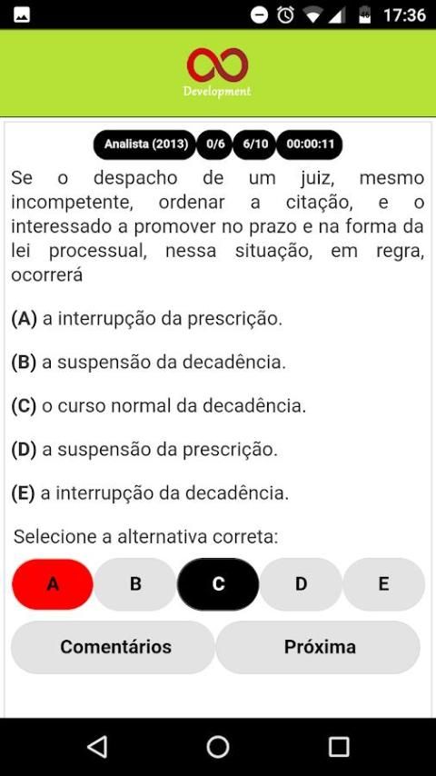 [✔] Recursos como cronometro, estatísticas de desempenho dos simulados, revisão de questões erradas, entre outros;