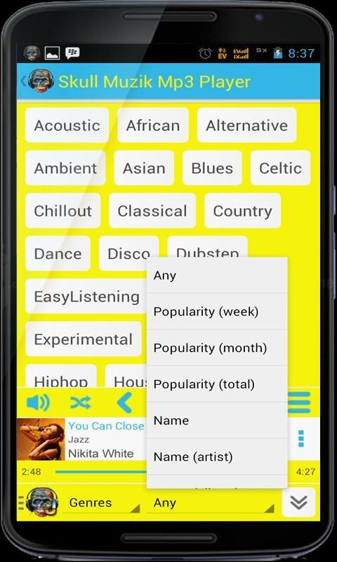Memungkinkan Anda mengelola semua file musik Anda lebih mudah dengan Skull Muzik Mp3 Player.