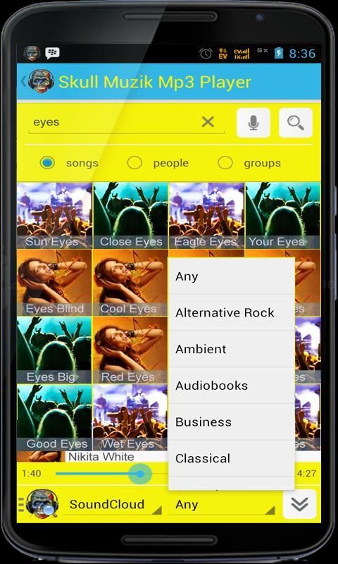 - Untuk tersedia lagu, genre, pengguna dan kelompok SoundCloud trek
