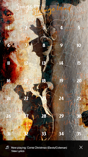 Lagu-lagu dari tanah yang aneh dimulai pada 1 Desember dan membawa Anda melalui Advent dan Natal, yang berakhir pada Pesta Epiphany, 7.