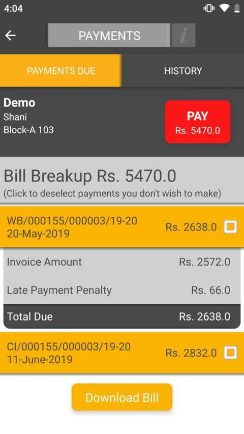 -All maintenance activities related to your flat like your dues, payment history, receipts, bills are