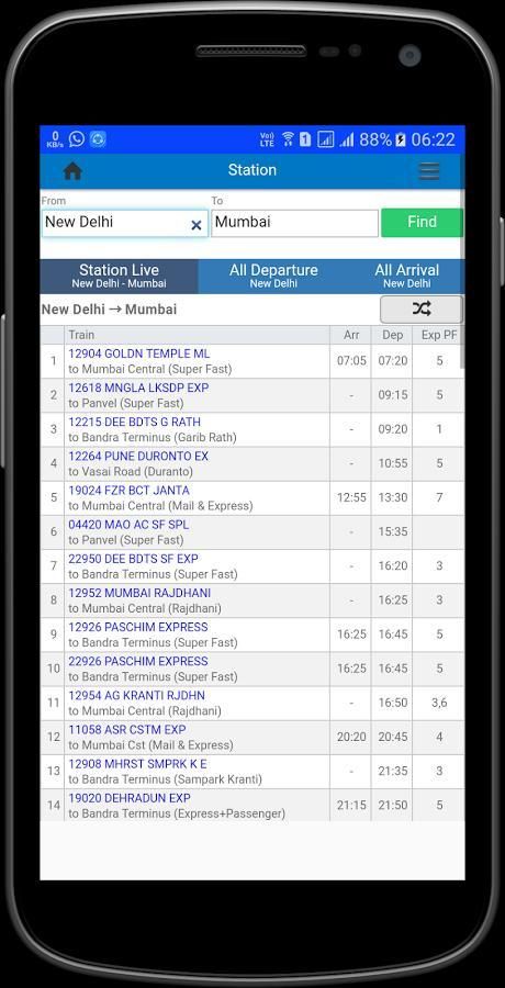 - Lihat jadwal kereta untuk semua penumpang kereta api India dan kereta ekspres.
