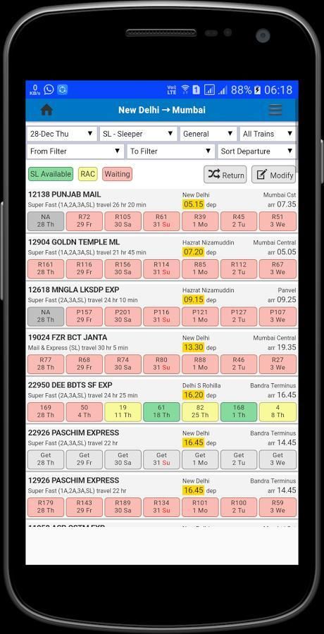 - Periksa IRCTC tiket kereta api dan ketersediaan seat 6 hari sebelum dan pasca tanggal yang diinginkan perjalanan.