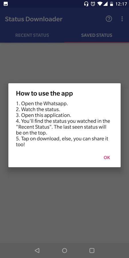 Aplikasi ini merupakan salah satu independen dan tidak berafiliasi dengan salah 3rd Party termasuk Whats App inc. App tidak menggunakan untuk mengkloning atau hack apapun itu hanya menampilkan file yang didownload di app.
