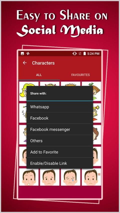 stickers like Animal Sticker, Character Stickers , Couple Stickers, emojis stickers, Cute stickers.