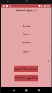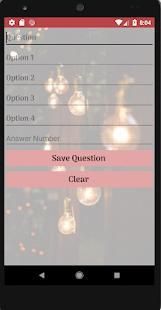 StudyBuddy allows you to create customized questions for the quiz. Without having to create a user account, you can save those questions on your phone. You can also view, edit or delete those questions later. StudyBuddy is your easy study tool to create a customized quiz.