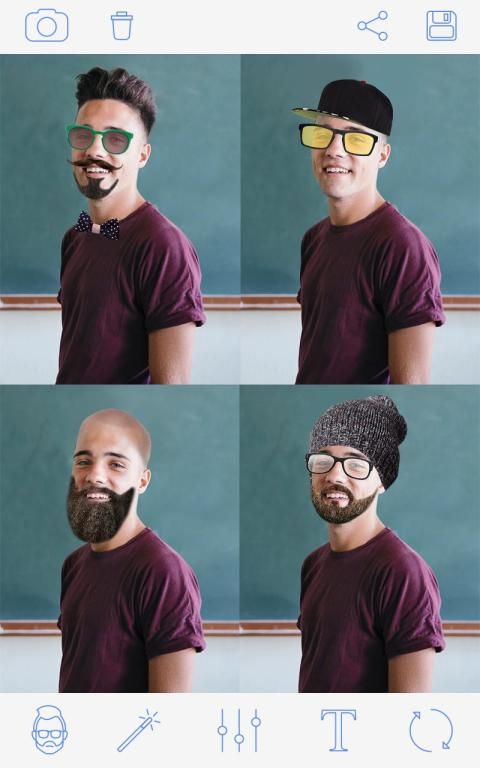 ✔ Tambahkan gaya rambut pria atau stiker jenggot di foto