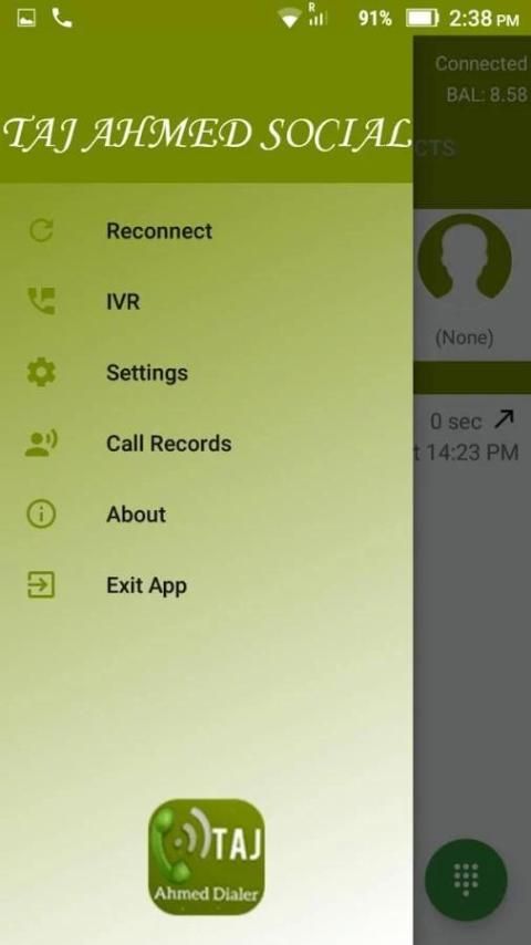 Taj Ahmed Dialer adalah / EDGE / Wi-Fi SIP dilengkapi telepon lembut 3G / 4G dengan kemampuan suara yang jernih. Hal ini memungkinkan sederhana, bebas repot Ponsel VoIP dan memastikan komunikasi terganggu. Hal ini dapat merekam panggilan VoIP dan memiliki perekam suara build-in dan player.Taj Ahmed Dialer
