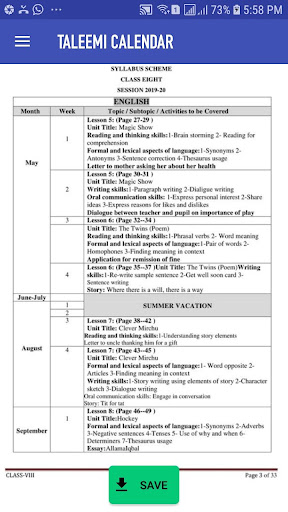 Respected teachers, parents and students this app will give you complete detail of syllabus and break up of SLOs for the complete educational year 2019-2020 from Nursery to class eight.