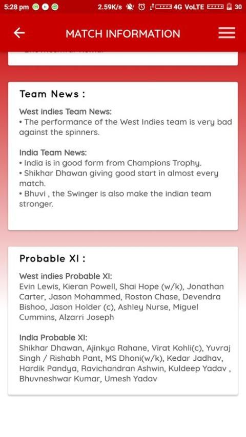 Itu termasuk pitch Report, Tanggal, Venue, Bermain 11 dan Tim Terbaik Dipetik dari pertandingan.