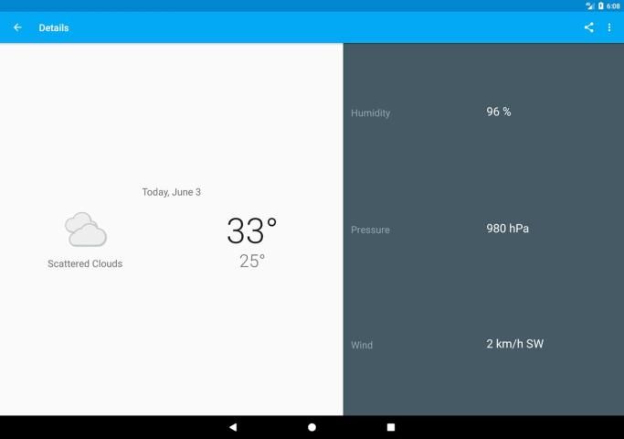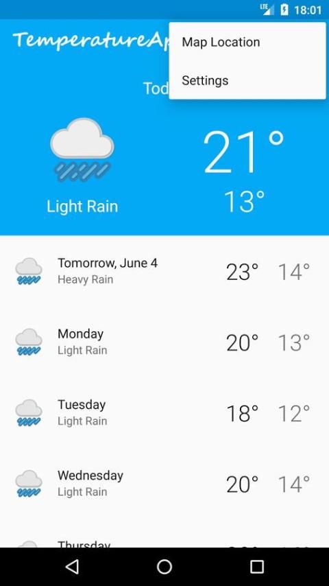 TemperatureApp menyediakan informasi seperti suhu, kondisi cuaca, kelembaban, angin, tekanan dan banyak lagi. Dengan beralih lokasi Anda bisa mendapatkan informasi perkiraan terbaru dari setiap kota atau lokasi.