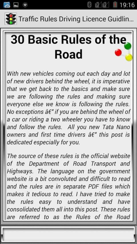 Ini adalah Informasi Pedoman Lalu Lintas bawah mencakup di aplikasi ini