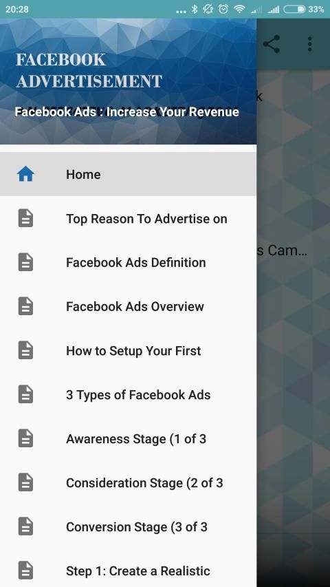 In this app (Tutorial Facebook Ads Marketing) you will find some important tutorial topics such as: The Definition of Facebook Ads, How to setup our Facebook ads, 3 Type of Campaign: Awarness, Consideration& Convertion, Create the realistic budget, How to Create Fan Page, Create Ad set, And some strategy to increase our revenues, and many other interesting tutorial topics.