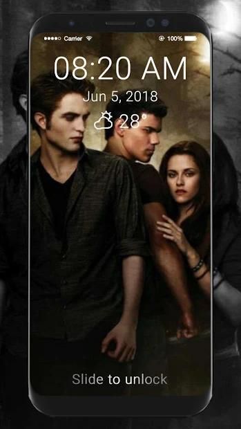 But when you use pin code the app use also the slide and that make your cellphone cool, Twilight Wallpaper HD Lock Screen lock screen is charge-free app and cool, theme don't miss it! Fans will love this app!!