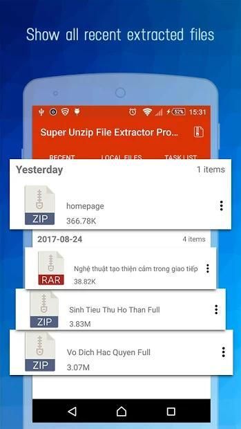 Super Unzip file Extractor adalah sebuah aplikasi yang membantu Anda mengekstrak file dengan cepat dan tidak menyebabkan kesalahan file Anda.