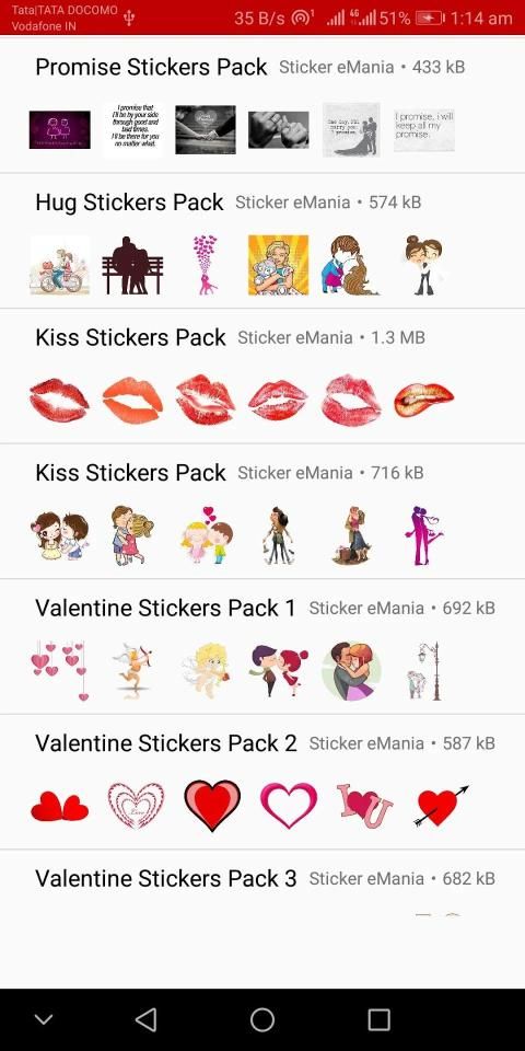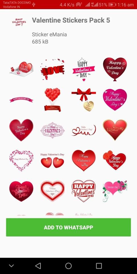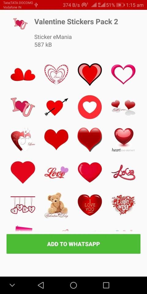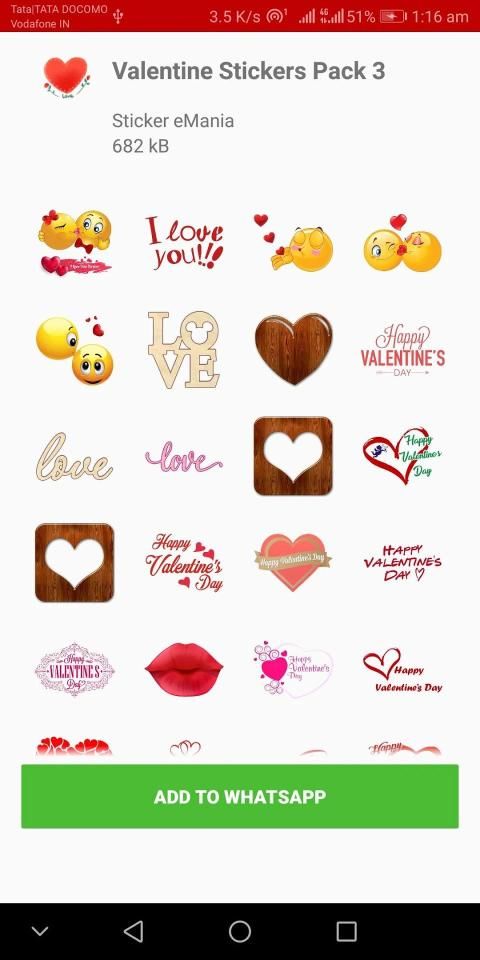 - Open app select Valentine Special Stickers pack select or choose a category