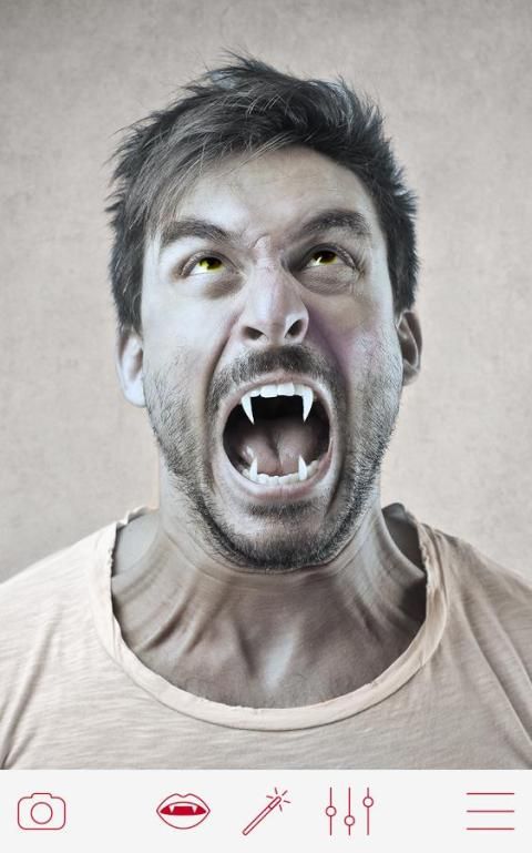 Gunain deh kamera dan foto editor khusus bikin muka vampir ini.