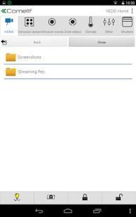 - Analog and IP series 100 and 700 Camera Management : Live, Pop Up Alarm, video streaming recording, taking screenshots on request, browsing and sharing of multimedia saved contents
