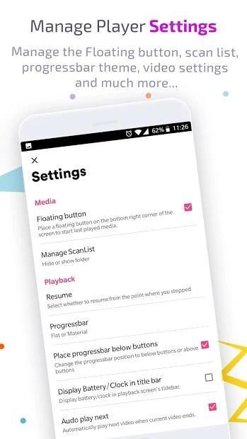 Mendukung SEMUA format video, file video 4K / ultra HD, dan memutarnya dengan definisi tinggi. Ini adalah salah satu pemutar video HD terbaik untuk tablet android dan ponsel android.