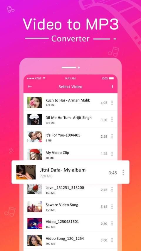 Convert mp4 to mp3, video to audio, and save as music. You can listen high quality mp3 songs on your phone.