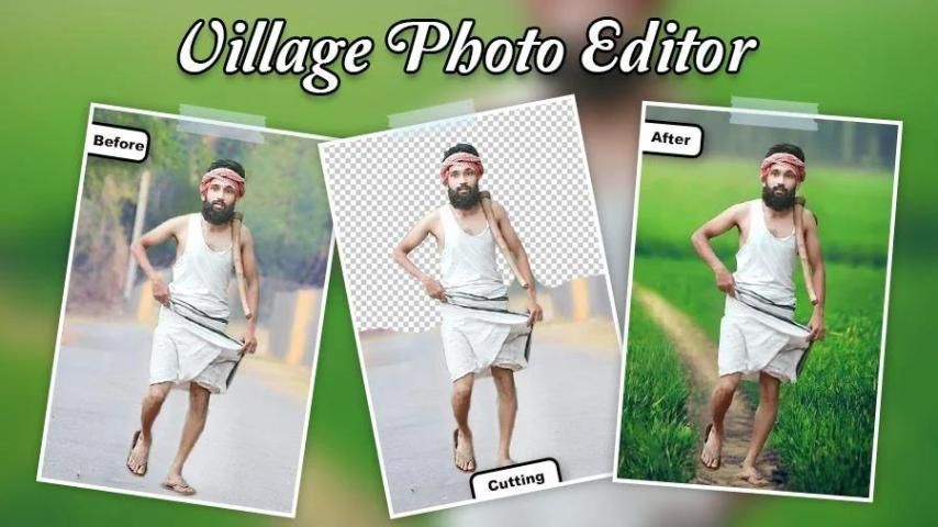 »Editor foto desa memiliki alat penghapus dan gunting baik untuk menghapus atau memotong tempel untuk mengubah latar belakang. Editor foto desa memiliki koleksi latar belakang foto persahabatan yang luar biasa.
