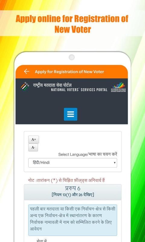 - Apply online for Registration of New Voter