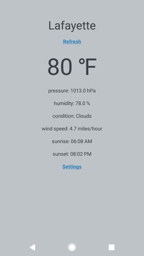 1. UI sederhana dengan suhu, dan lokasi Anda saat ini