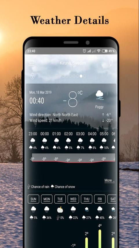 Real-time temperature, rain, snow, humidity, pressure, wind force and wind direction are all in this weather application based.
