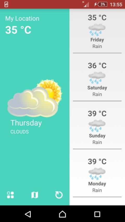 - Cuaca mendukung geo-posisi, mengambil kondisi cuaca terbaru untuk lokasi Anda saat ini