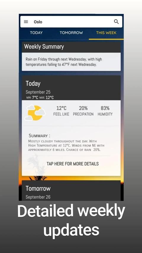 - Get hourly, daily, tomorrow and weekly weather forecast.
