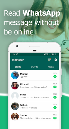 Jangan Tidak perlu lagi melepas koneksi internet atau mengaktifkan mode offline: Whatseen menyediakan desain yang sederhana namun cantik dan d memudahkan untuk menyortir dan mengakses pesan Anda.