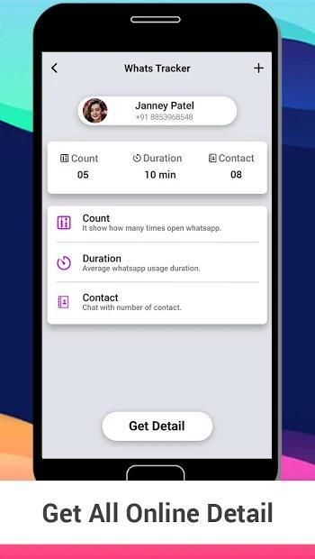 WhatsApp Online tracker is useful for tracking online detail. Whats Log Tracker shows online and offline log detail when your friend becomes online in whatsApp. Profile Tracker allows you to monitor details of your friends, family member, your Bestie even if they are hiding the last connection time or even if you have been blocked. Wlog tracker shows real time whatsapp detail. Online Tracker will also monitor if he or she changes the profile picture or status message (if their privacy settings allow it).
