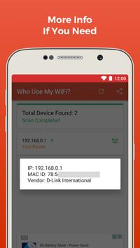 Many times you don't know why your internet speed is so slow. There might be one reason that someone is stealing your wifi network speed without your permission. Using this app, in seconds you know how many and which device is connected to your router with IP, MAC ID and vendor listing.