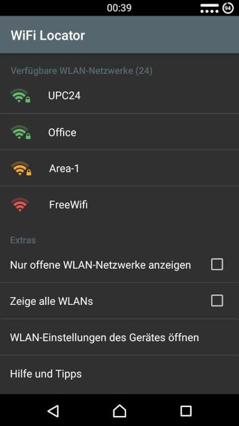 Fitur utama dari aplikasi WiFi Locator adalah switching otomatis dan mematikan fungsi nirkabel dari smartphone. Jika tidak ada jaringan yang dikenal ditemukan di dekatnya, sehingga fitur WLAN dimatikan, jika tidak tetap di ini. Ini tidak dilaksanakan oleh posisi perangkat (seperti yang dilakukan banyak aplikasi lain). Hal ini mengakibatkan banyak lagi menjalankan kali, seperti baterai dilindungi.