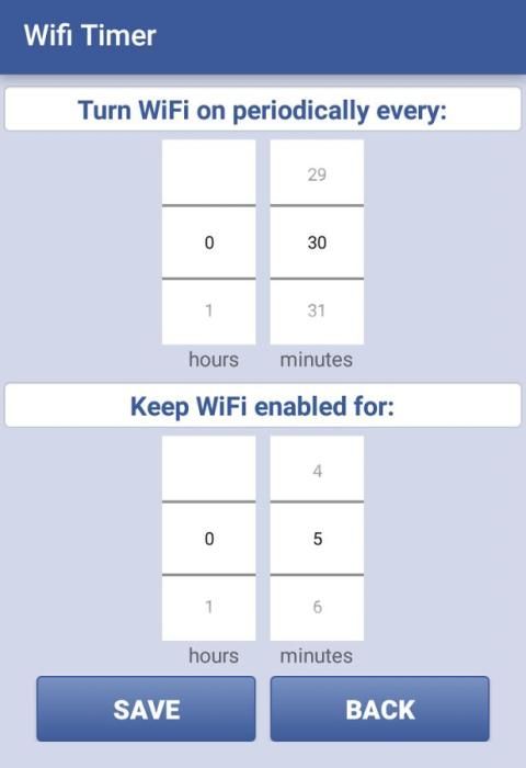 Jam menjaga WiFi diaktifkan membuat baterai kehabisan daya sangat cepat. Setelah semua, kami ingin tetap up to date dengan notifikasi jaringan yang berbeda. App memungkinkan untuk mengaktifkan WiFi di sekali-sekali, ditentukan persis oleh pengguna, untuk membiarkan aplikasi lain untuk men-download pesan dan pemberitahuan. Kemudian, WiFi dinonaktifkan dan seluruh proses terus secara berkala. Karena jenis solusi ini, kita menghemat daya baterai secara signifikan. App sempurna untuk orang-orang yang tidak menggunakan smartphone yang banyak atau hanya sibuk, secara bersamaan tidak ingin kehilangan sesuatu yang penting.