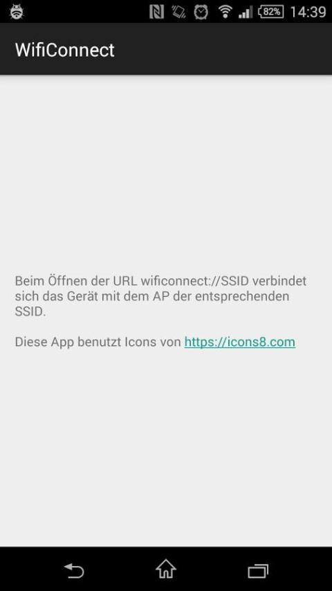 Beim Öffnen der URL wificonnect://SSID wird das Gerät mit dem Wifi-Netzwerk der entsprechenden SSID verbunden.