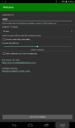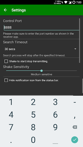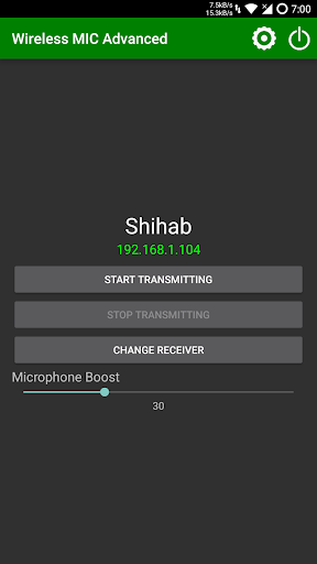Wireless MIC Advanced Aka WSMA Sender app would record the real time microphone audio and transmits to the connected receiver over a network. The network can be made off creating a hotspot, connecting to a Wi-Fi network, connecting through a USB established network, etc...