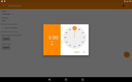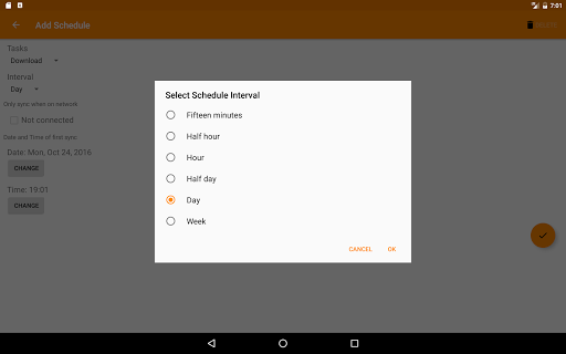 - Schedule file transfers, e.g. once a day or once a week. The scheduling is inexact to save battery.