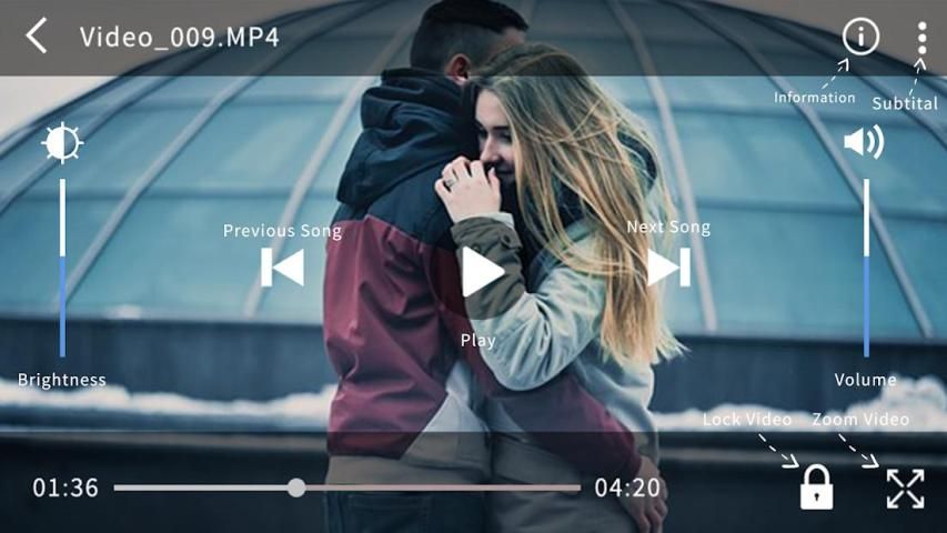 - Mudah untuk mengontrol volume, brightness dan kemajuan bermain.