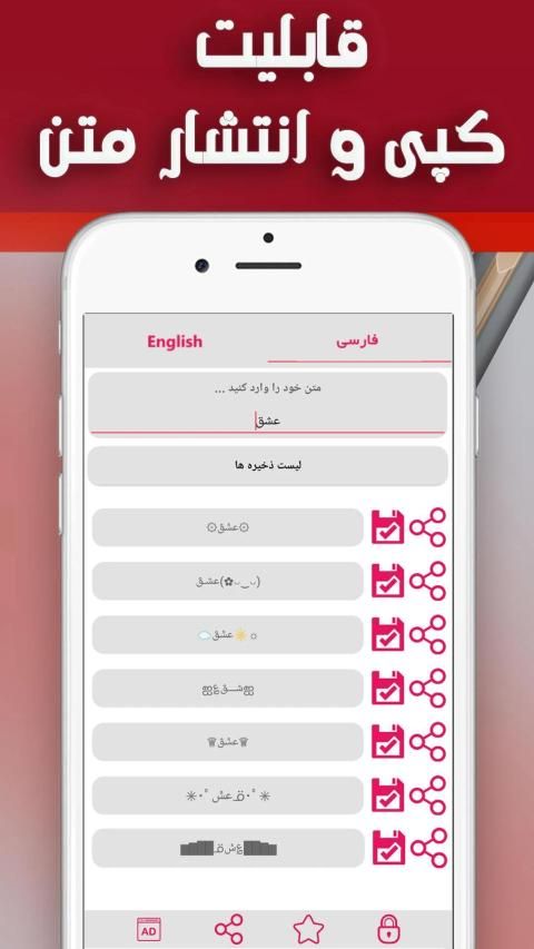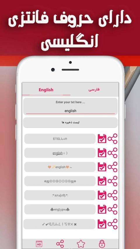 Dengan aplikasi yang indah Anda dapat dengan mudah membuat teks Persia dan Inggris yang indah!