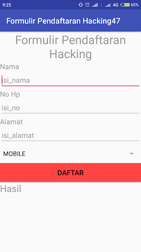 aplikasi ini hanya menampilkan form pendaftaran hacking