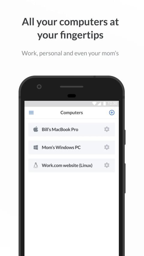Aman mengakses komputer Anda dari ponsel, tablet, atau komputer lain. Mendukung semua platform desktop (Mac, Windows, Linux), platform mobile, dan browser web.