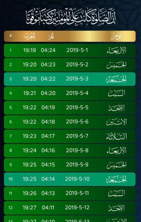 اوقات الصلاة عبر تطبيق اوقات الصلاة لمعرفة اوقات الصلوات الخمس و وقت الشروق والغروب والامساك والافطار
