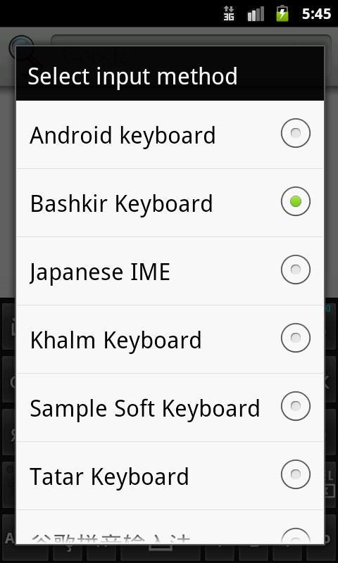 Selanjutnya, dalam bidang masukan, misalnya, melaporkan tekan terus daerah masukan. Anda membuka metode menu input (Input Method), di mana Anda memilih keyboard yang diinginkan.