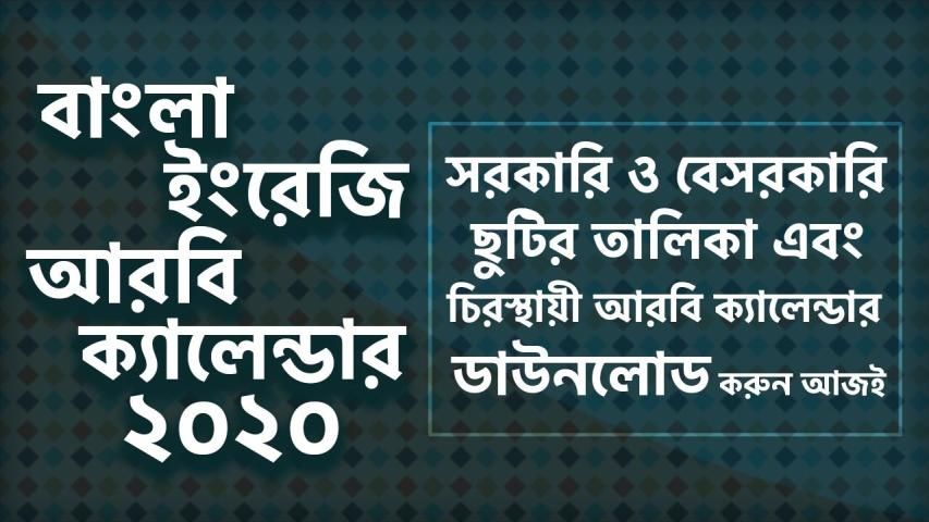 * ক্যালেন্ডার বাংলা ইংরেজী আরবী ২০২০