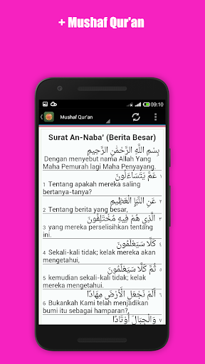 Dan dilengkapi dengan mushaf Quran dan terjemahan Bahasa Indonesia dan Bahasa Inggris.
