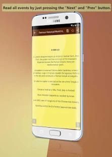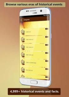 Salah satu fitur terbaik dari aplikasi yang besar ini adalah untuk menunjukkan peristiwa sejarah dalam era yang berbeda dan sekaligus di squence a. Pengguna dapat menelusuri dan membaca peristiwa dari erass berbagai sejarah dan membaca semua acara dengan hanya menekan tombol "Next" dan tombol "Prev". Semua fakta menarik, besar, indah, dan menakjubkan tentang sejarah telah dikumpulkan dari berbagai sumber online.