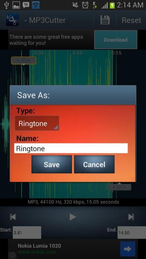 yang pernah pengguna Format ingin, dapat menyimpan dalam format tersebut. Secara default akan disimpan di / mnt / sdcard / media / audio. Di dalam folder ini jika pengguna menyimpan bagian yang dipilih dari audio Ringtone kemudian di dalam folder itu akan disimpan dalam folder Ringtone, yang mengatakan hal itu akan disimpan dalam struktur folder ini / mnt / sdcard / media / audio / ringtones .